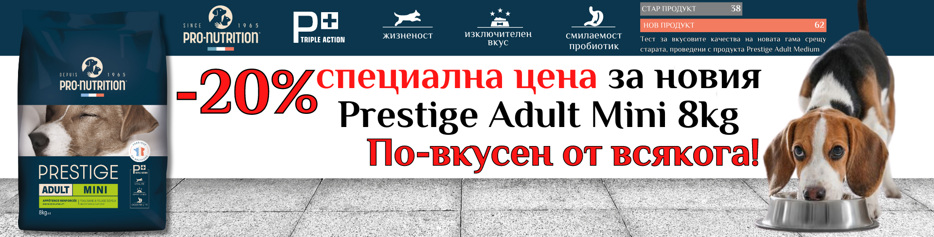 PRESTIGE DOG ADULT MINI 8 kg - Пълноценна храна за пораснали кучета от дребни породи. Произведена във Франция.