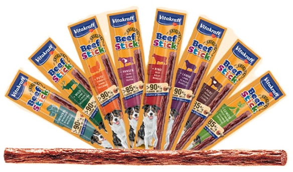 Лакомство за кучета - Vitakraft® Beef Stick® - МЕСНА ПРЪЧИЦА за КУЧЕТА с ПУЕШКО